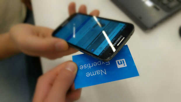 Ahora puede usar su tarjeta para entregar su información de contacto y ampliar su red rápidamente! Simplemente deslice su tarjeta junto al teléfono de una persona y poner de nuevo en su bolsillo o los reparten como caramelos de alta tecnología!