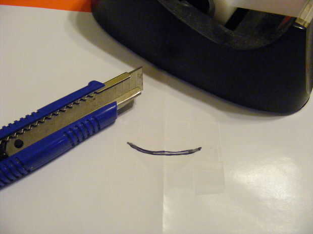 En la parte posterior de la imagen, reforzar el área alrededor de donde la boca es con varios trozos de cinta adhesiva para asegurar una cobertura completa.