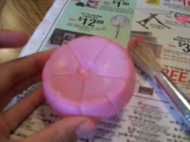 Ahora es el momento para decorar la cabeza de la flor. Usé pintura acrílica rosa y mezclan un tono ligeramente más oscuro para crear la ilusión de más profundidad en las grietas. Si desea que el color se opaca, puede tomar varias capas. Si quieres un look más translúcido, probar con menos capas de la pintura. No dude en utilizar su propia combinación de color o patrón. Esta es tu oportunidad para hacer una flor única! ¿Por qué no hacer rayas o lunares? o se inspira en la naturaleza!