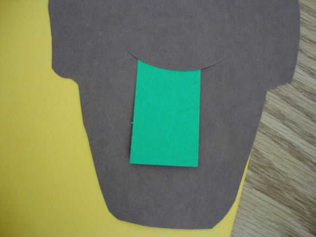 En el pote de flor cortar una forma de U.  Poner el verde hacia abajo en la ranura de la maceta y pegar el tallo en el lugar.