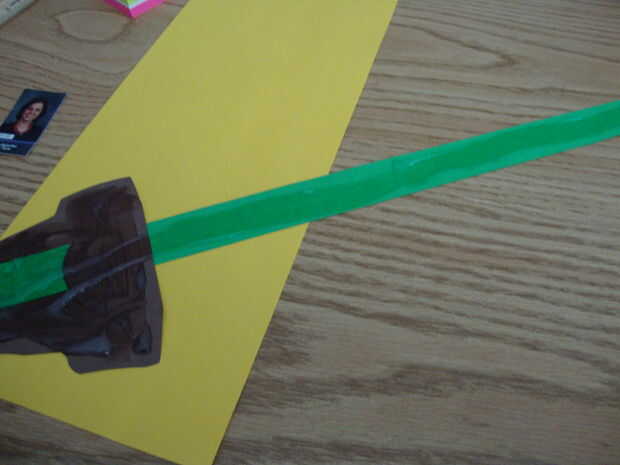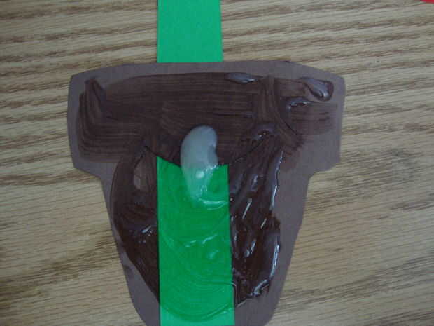 Pegar la parte trasera de la olla y el vástago a la larga pieza de papel