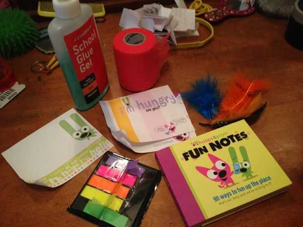 Reunir algunas cosas que usted puede poner en la tarjeta como un collage. (ex: divertidas tarjetas, notas adhesivas, cintas, envoltorios de golosinas de colores...)