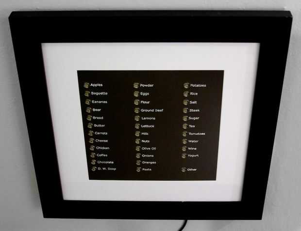 Por lo tanto, decidí crear un gadget que me permita marcar una falta tienda de comestibles con un toque de un botón. El gadget transferirán la información sobre artículos faltantes a mi teléfono y responde me compra las cosas que faltan.