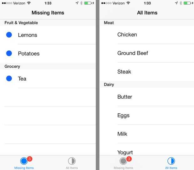 He creado un muy básico, dos de la pantalla de la aplicación para mostrar la falta de productos y una lista de todos los productos.