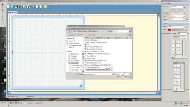hice mi maridito una camiseta de Superman para Navidad.  Así que decidí hacer una tarjeta de aniversario para ir con ella. Primero hice una búsqueda en Google para un símbolo de Superman. Encontré uno que haría un gran sello. He guardado en mi disco duro.  Entonces abrí los cortes que un programa de mucho.  Ha hecho clic en el símbolo del cuadro encontró el símbolo de Superman en el disco duro y lo abrió.