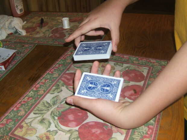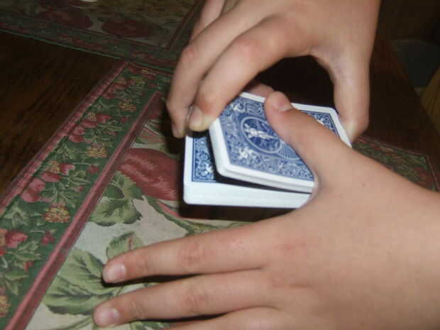 Con el pulgar coge el paquete y deslice en la otra mano.