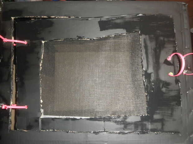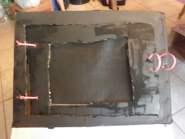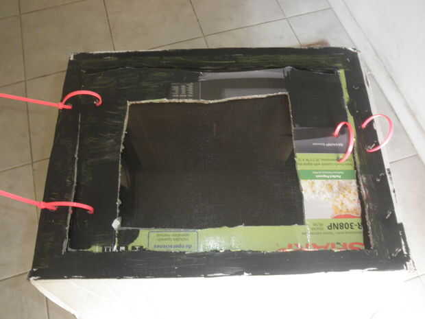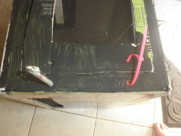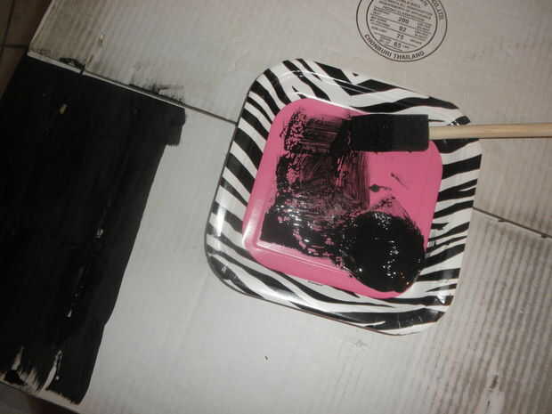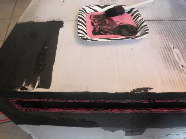 por favor disculpen cómo horrible mira la caja... Empecé a pintar una "cartilla" en él para ver qué tan bien la pintura cubriría la impresión que estaba en la caja.