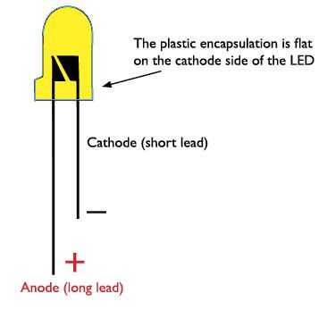 Tienes que prestar mucha atención a la polaridad cuando se trabaja con LEDs. Se sólo se encienden cuando los ánodos están conectados a la + lateral de la batería y el cátodo está conectado al lado negativo. No dañará el LED si desastre--simplemente no se enciende. Y después de todo el trabajo que has puesto en la tarjeta hasta el momento, sería una gran vergüenza a esta parte. Así que mirar mi dibujo de LED y las instrucciones impresas en la descarga con cuidado.