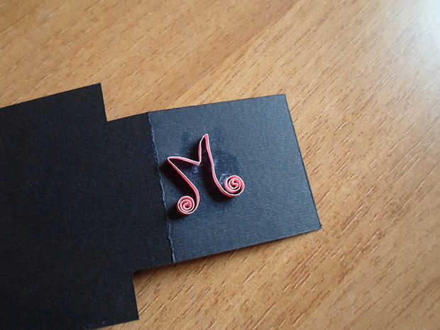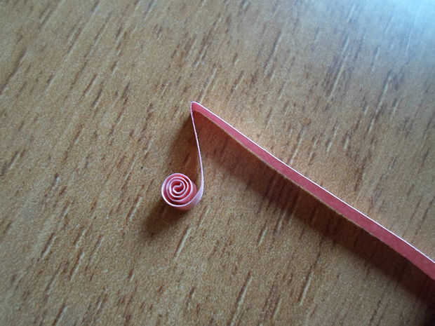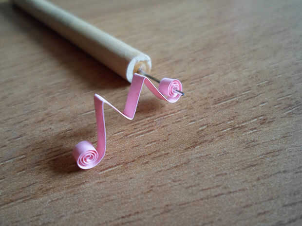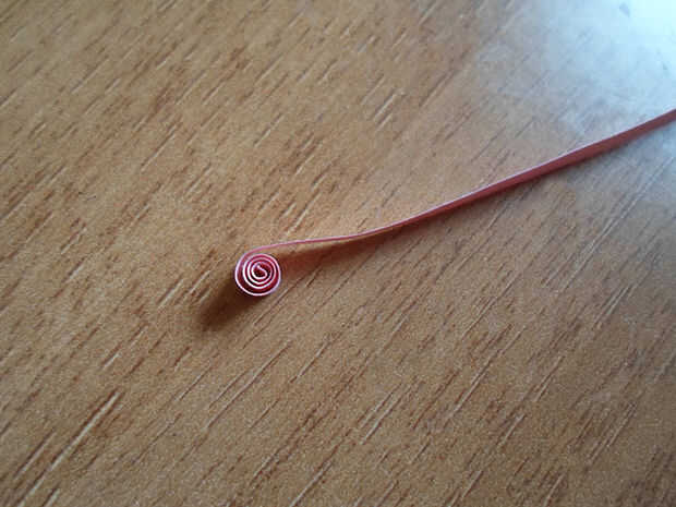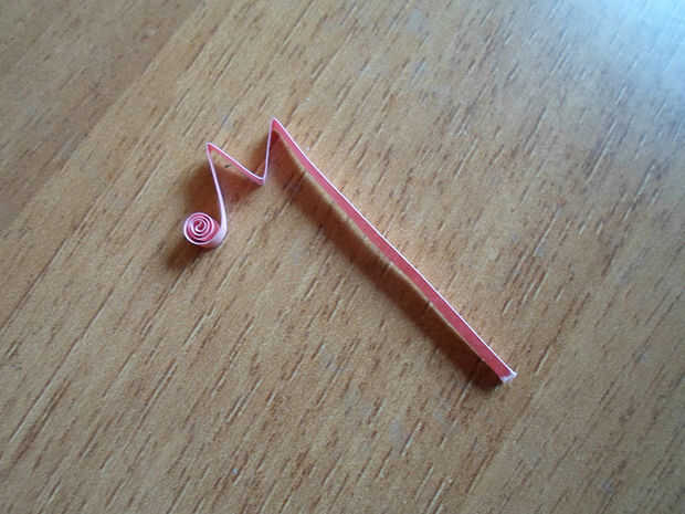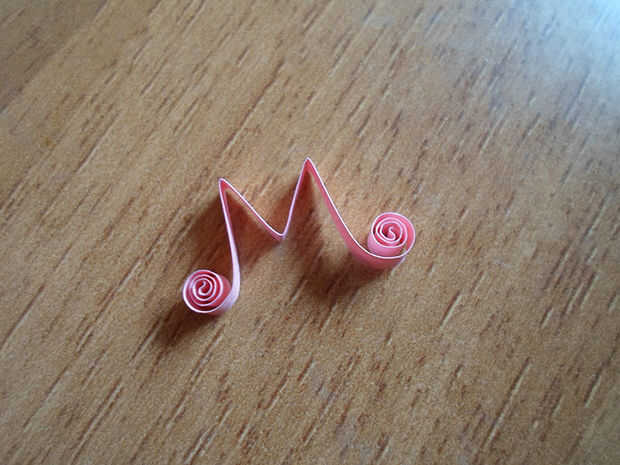 Para hacer la "M" algunos de la tira había enrollado en una bobina suelta abierta. Abierto significa que no lo soluciono con el pegamento en el extremo, simplemente dejé la tira recta libre.
