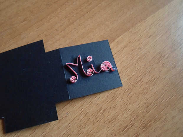 Para hacer el "yo" Yo simplemente cortar un pedazo corto de la tira de papel había curvado un poco como un semicírculo y había pegado cerca de la "M".