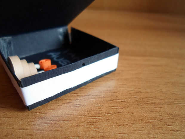 Hacer un agujero en el centro de la parte derecha de la caja y otro agujero en el centro de la parte derecha de la cubierta.