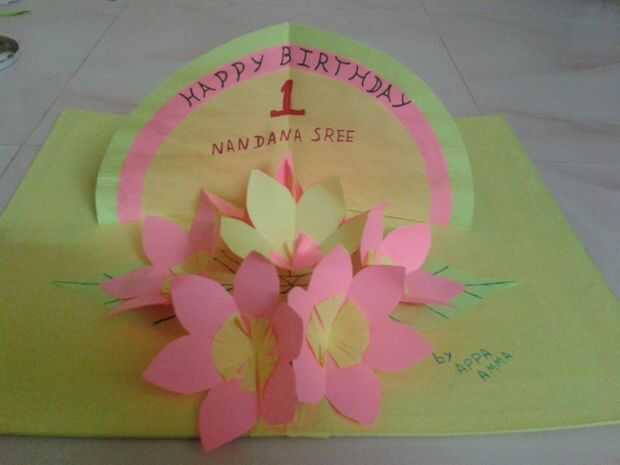 A pesar de que he comprado muchas cosas de las tiendas para mi bebe de 1 año de edad. Quiero hacer algo por mi cuenta para mi bebé. Así que decidí hacer una tarjeta de cumpleaños. Mi objetivo es ver linda sonrisa en su cara cuando mi tarjeta. Gané al fin.