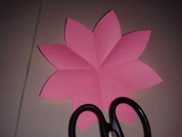 6) Abra el papel y encontrar flor de 8 pétalos.