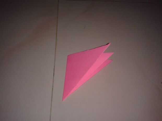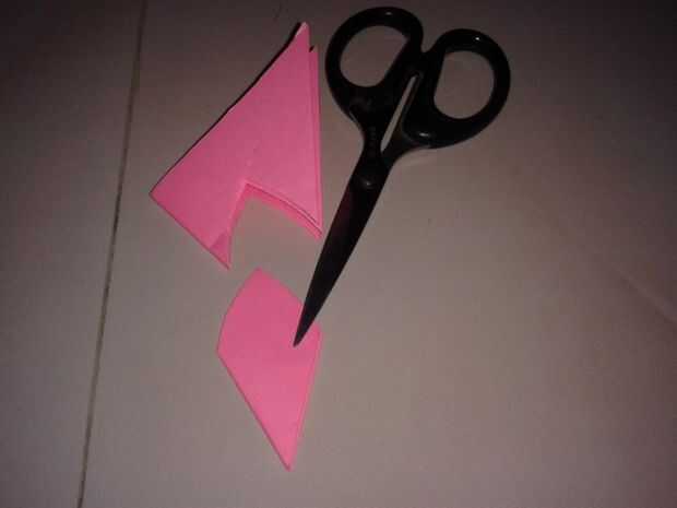 5) cortar el triángulo como pétalo de la flor como se muestra en la figura.