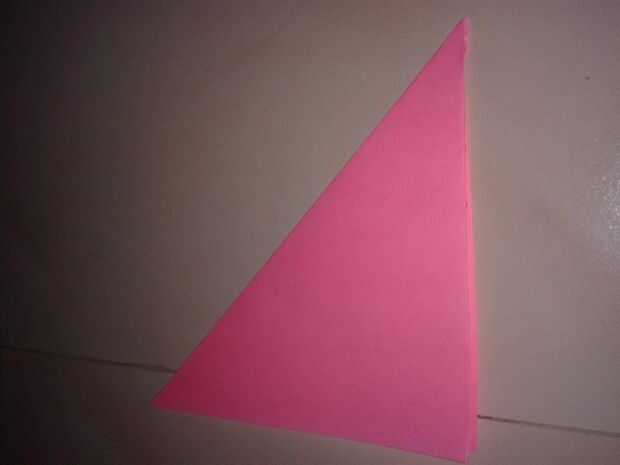 2) tomar un papel cuadrado y doblarlo como triángulo.
