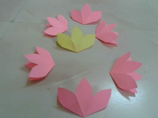 1) hacer 7 flores con colores encantadores.