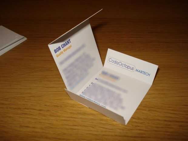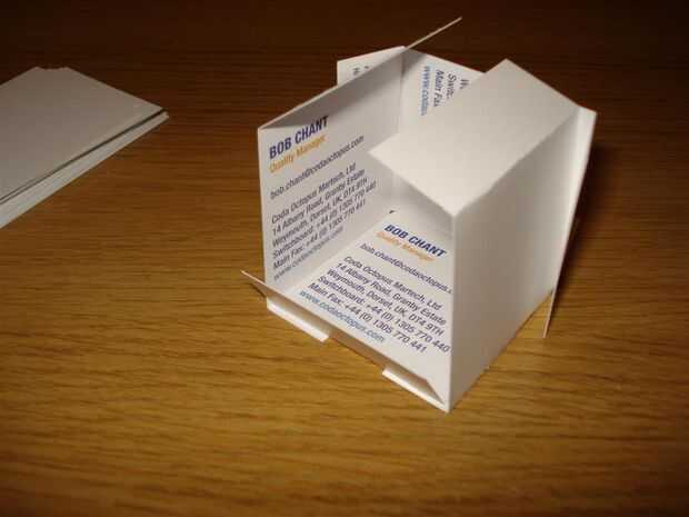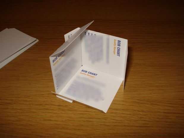 Coloque una segunda tarjeta a lo largo de un lado de la primera tarjeta de visita. La aleta debe estar bajo la tarjeta de la parte inferior.
