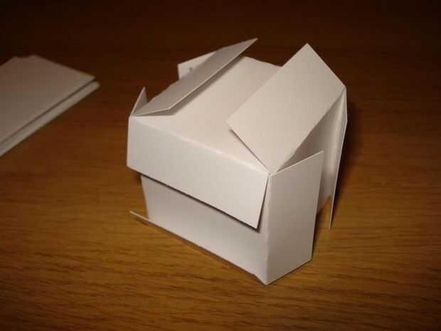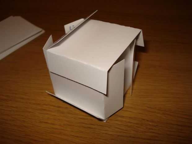 La tercera carta debe colocarse hacia la parte posterior del cubo, para que todas las 3 tarjetas forman una esquina. Cada tarjeta deberá mantener en su lugar una tarjeta y a su vez debe tener una tarjeta de otro en su lugar.