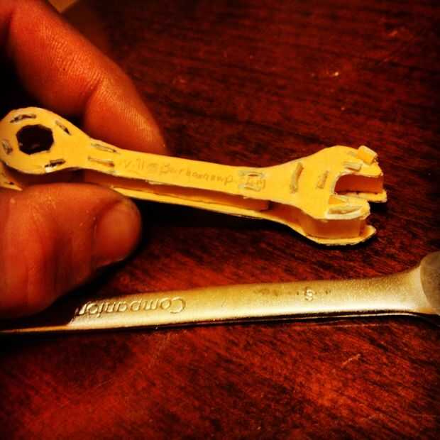 Usé un cuchillo x-acto y cartulina para prototipo mi concepto inicial. Quería curvas complejas en la llave, así que lo hice de la manera antigua. Las juntas de mortaja y espiga y las curvas suaves con un grueso mango de diferentes resultaron muy difíciles para el diseño de herramientas de metal de hoja, pero fácil de hacer con papel.