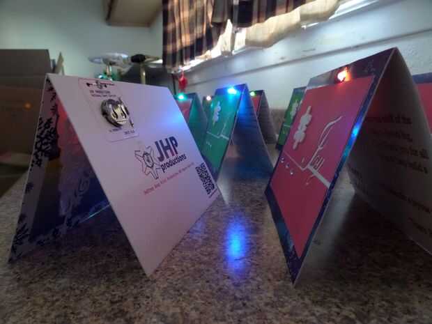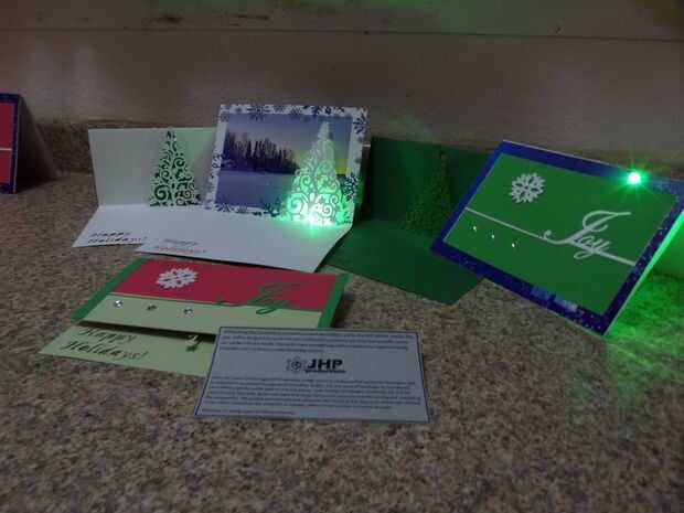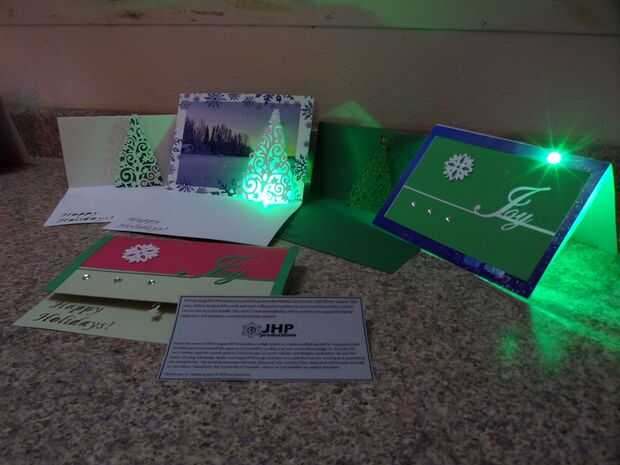 La tarjeta es relativamente fácil de hacer - me encontré con algunos baches en el camino, pero no se preocupe, usted probablemente no cometer los mismos errores porque estoy señalando. Produje 15 tarjetas de LED y sin LED 3 a lo largo de cuatro días antes de enviar todas las tarjetas hacia fuera. Ir a través de este instructable para aprender a hacer su pop-up de LED cartas en ningún momento!