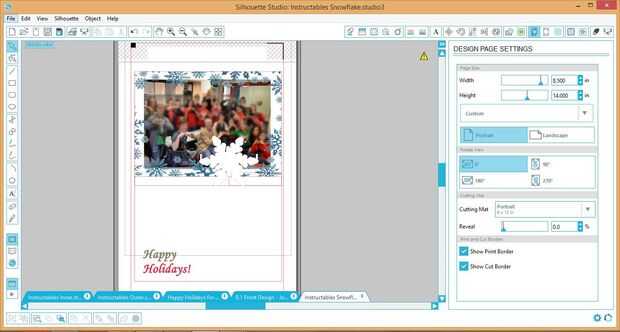 Una vez que han escalado su diseño emergente posicionado y encuentra sus dimensiones, asegúrese de que a escala de la imagen del mismo tamaño en Paint.NET. La siguiente parte es el diseño de la foto de fondo - en primer lugar para las tarjetas personalizadas, tomaron fotos con la gente que daba las cartas. Estas fotos fueron colocadas de tal manera que el copo de nieve o árbol de Navidad sería capaz de encajar en algún lugar sin obstruir las personas de la imagen. Abrí estas fotos en Paint.NET y luego creó un fondo blanco del diseño emergente superponer la capa existente de la foto de fondo. Esto proporciona un área para el diseño emergente a recortar sin los colores de la imagen de fondo obstruyendo el diseño. Después se fusionaron las capas y me abrió la nueva imagen en el estudio de la silueta.