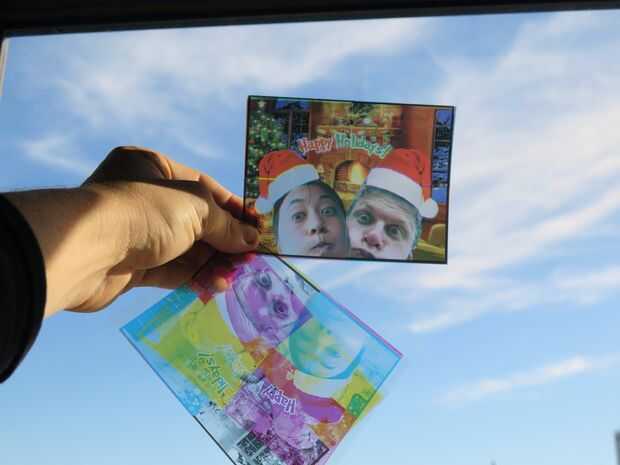 ¡ Lo hiciste! Puede alinear los cuatro y mantenga una luz, el cielo o una caja de luz para ver la magia. Puede ir más allá de las tarjetas de Navidad y hacer que cualquier cosa usted para que por favor.