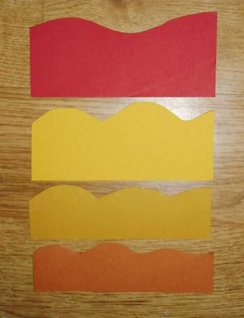 Medir el largo y ancho de su tarjeta de Ready-Made. Decida cómo es alto la tarjeta quiere la 'arena' por venir. Mida y marque hacia fuera de la arena en su tarjeta de color. Recuerde: no tiene todos los colores a la misma altura, stager ellos.  Recortar las formas. Para probar cómo se ven, colocarlos uno encima del otro, con el más alto en la parte posterior.