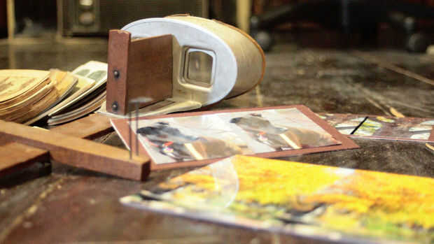 Uno de los muchos de mis buenos recuerdos de mi abuela que se centra en el estereoscopio. Me sientan en su regazo y mira imágenes 3-d desde antes de la época del cine de los terrenos cavernosos en Bali, trenes en Brooklyn, turistas por secoyas, recreaciones de las historias de la Biblia y aun serie de bromas. Usted puede viajar por el mundo con estas cosas, que puede no significar mucho en la era de internet, pero podría hacerlo * baja la voz a un susurro * en 3-d!