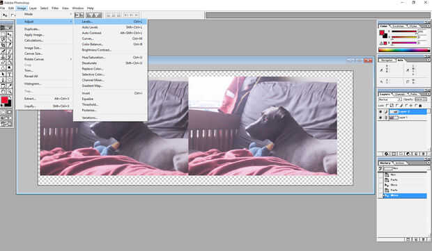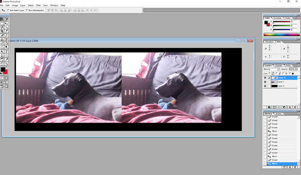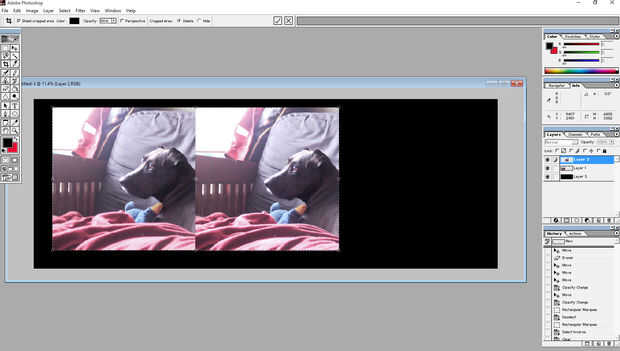Alineación: Encontrar un objeto en la foto y dos fotos para seguir esa línea de Oriente. Es así de simple. A menudo voy poner una foto encima de la otra reducir la opacidad de la foto de arriba y luego la línea el tema de un lado con transformación libre. Recuerde, nunca va a alinear perfectamente. De lo contrario, no es 3D. Para no sudar la alineación o cultivo tanto que te quedas sin una foto.