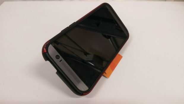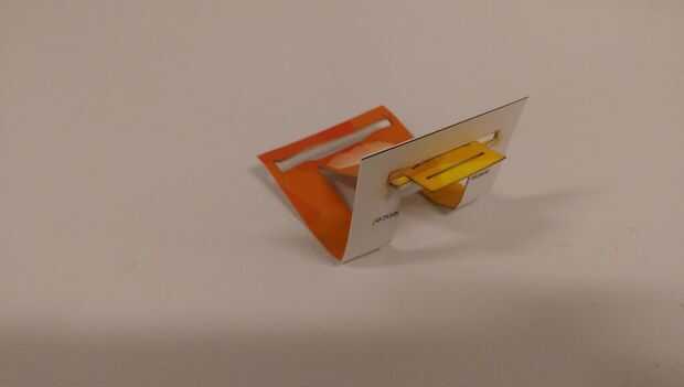 Después de haber cortado la tarjeta, encontrarás tres pestañas en la parte superior y una lengüeta en la parte inferior. Las tres pestañas en la parte superior son uno pequeño, uno largo uno y pequeño. Doblar los dos pequeños atrás dejando la lengüeta central en lugar. Doblar la pestaña larga inferior hacia adelante, esto captura la parte inferior del teléfono y evitar deslizamiento fuera de lugar. Ahora jale la lengua hacia arriba y doblar los lados exteriores de la tarjeta en la línea media. Deslice la lengüeta a través de la ranura superior y colocar la ficha de centro a través de una de las ranuras de corte en la lengüeta para bloquear en lugar. Puede ajustar el ángulo del teléfono mediante la alteración de lo que la ranura de la lengüeta que coloque la ficha a través de.