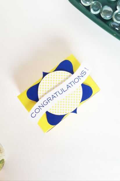 Pegue las lengüetas con pegamento blanco artesanal o cinta de doble cara papel. (Uso la tarjeta de regalo final abrigo fotos en este post como referencia).