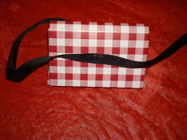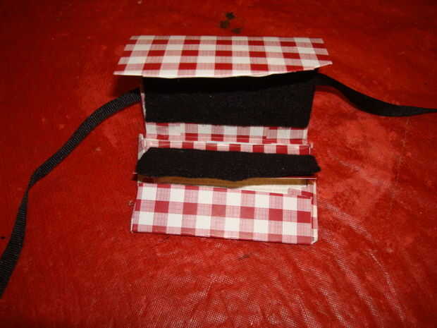 Doblar la cinta negra por la mitad y pégalo al centro de la caja de aguja como se muestra.