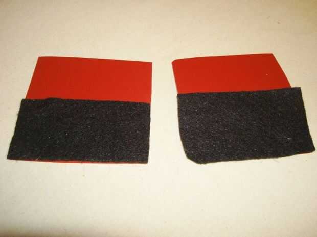 Cortar 2 trozos pequeños de fieltro negro o marrón que se pegan a la cartulina para asegurar las agujas. Véase la nota abajo.