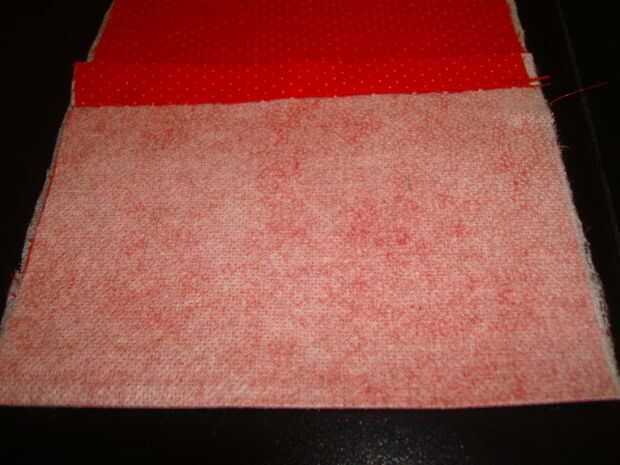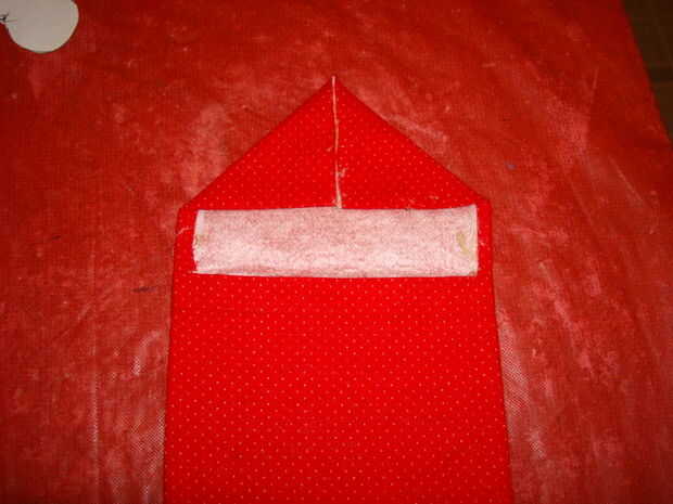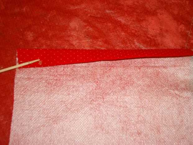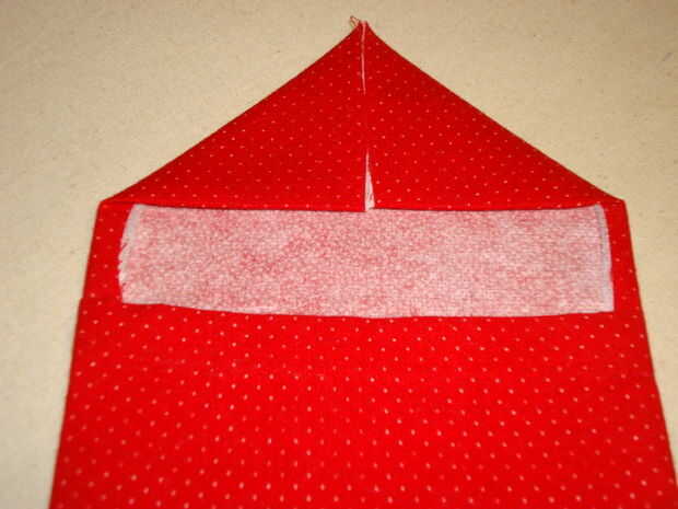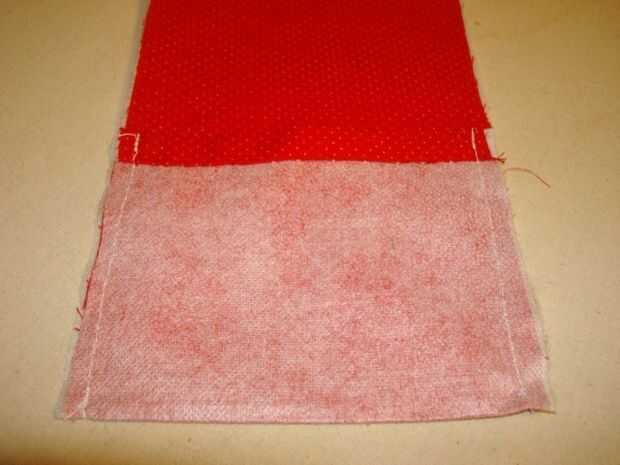 Gire hacia arriba el borde inferior de la tela 4" para formar el bolsillo.