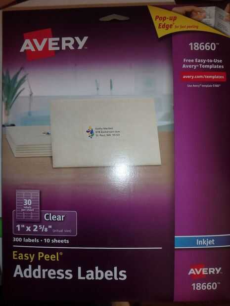 1.) consigue el Avery 18660 fácil pelar etiquetas de dirección (estos son de inyección de tinta solamente)