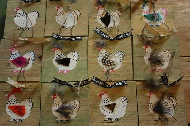 Durante los últimos años hemos estado haciendo nuestras propias tarjetas de felicitación ecológicos para Navidad. Esto no sólo ahorra recursos y dinero, pero crea un regalo personal, que muestra que familiares, amigos y vecinos, nos tomamos tiempo para crear algo para ellos. De experiencias pasadas sabemos que las personas mantienen estas tarjetas, que siendo de madera son menos efímero que las variedades de papel y están destinadas a ser colgadas para arriba y utilizado como pequeños cuadros o decoraciones. Mediante este método, que combina la plantilla, Complementos pintados a mano, collage y decoupage fácilmente puede producir varias tarjetas pero cada diseño será individual y por lo tanto único.