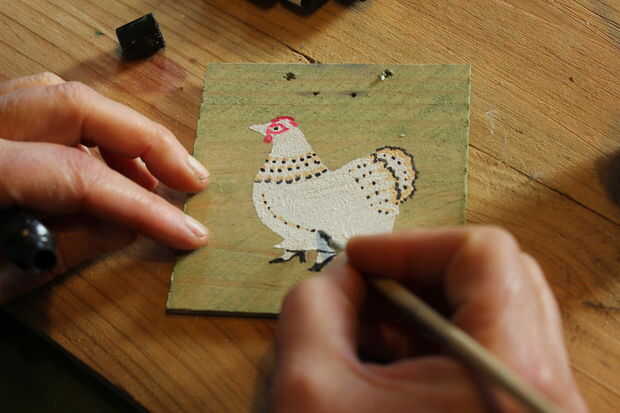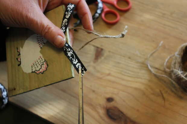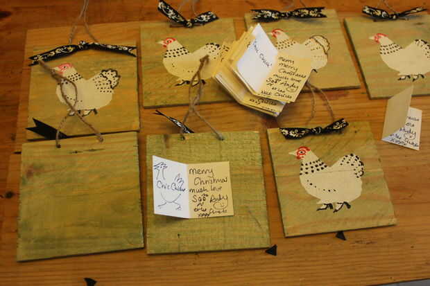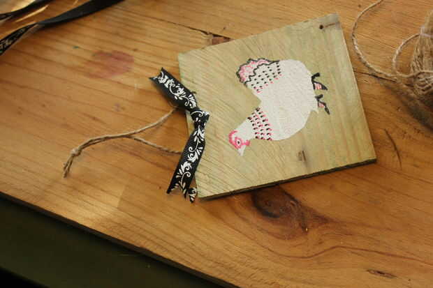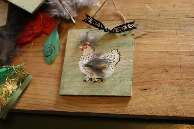 ... Add collage y decoupage. Se trata en el caso de 'Chic Chick' plumas de un amigo Turquía y gallina de guinea y decoraciones, collage y decoupage de una tienda de segunda mano - estos 3 últimos son hechos con tintes vegetales.