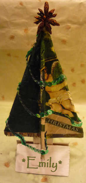 Siguiendo el mismo uso de materiales de desecho recuperadas pero esta vez también con algunos madera fina plataforma para crear ajustes de lugar de la tabla y también madera de cajón de fruta para crear decoraciones 3D de la tabla o árbol.