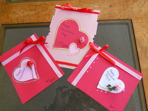 Aquí están algunas fotos de algunas tarjetas que hice. Mis fuentes fueron cartulina, pegamento del brillo, pegamento caliente, flores de seda, cintas, sellos y marcadores. Espero que estas tarjetas queridas te inspiran.