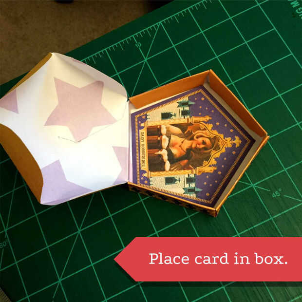 Después de muchas horas de buscar en la web de la plantilla para imprimir ideal para caja de rana de Chocolate de un Honeyduke, la web parece quedado corto. Terminé descargando lo que parecía ser una exploración de un cuadro usado (líneas de pliegue