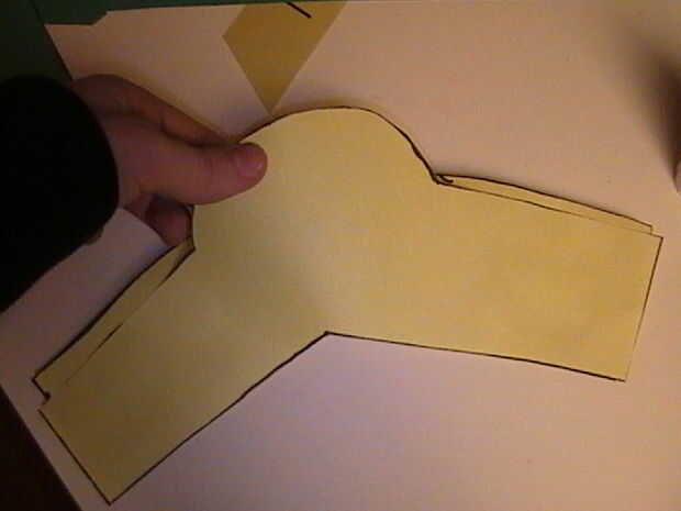 Después de cortar una forma de tope hacia fuera, poner en papel más amarillo y hacer una segunda.