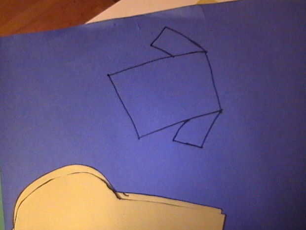 Traza el torso de la persona en un color de su elección. Añadir mangas a la traza, luego recortar el resultado. Esta es tu camiseta.