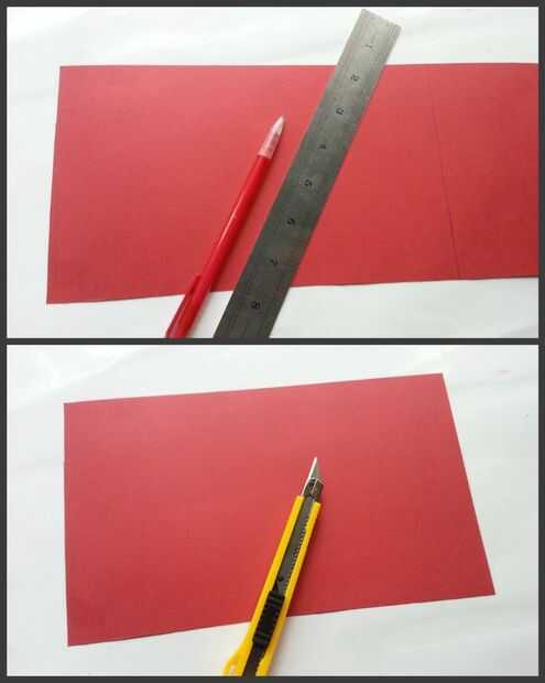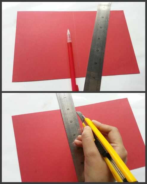 Después de corte de papel para la tarjeta ahora marcar la línea de plegado por el centro. Otra vez sostenga la regla firmemente a lo largo de la línea central y hacer medio corte con cuchillo x-acto. Ahora cuidadosamente dobla el papel a lo largo de la línea de corte medio.