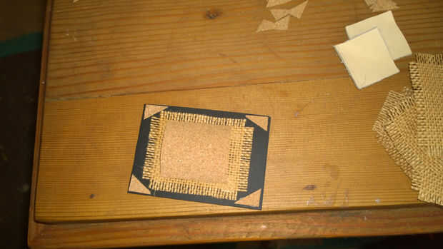 Pegar el corcho como el anterior. Pegue en arpillera.