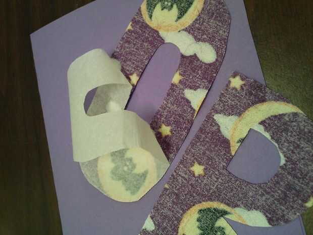 Fusibles correas están maravillosa. Es un material de papel que permite a un tejido a otro el fusible o el fusible en este caso, la tela a la cartulina. Cortar un trozo de tela de aproximadamente 9 "x 9". Cortar un trozo de cinta fusible de 8 "x 8". Planchar la cinta fusible en el lado equivocado de la tela, papel para arriba. Luego cortar las formas y recuerdo cuando se corte las cartas, cortar hacia fuera con el lado de papel para que las letras no se revierten. Retire el papel protector. Colocar las letras o formas en su papel y presionar con hierro caliente.