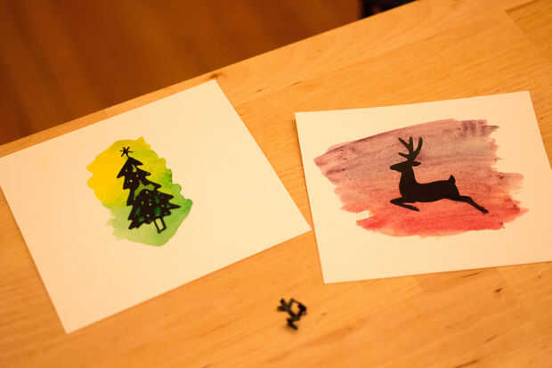 Tarjetas de Navidad acuarela (3 / 4 paso)