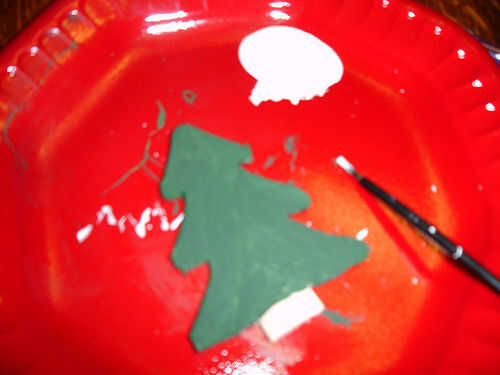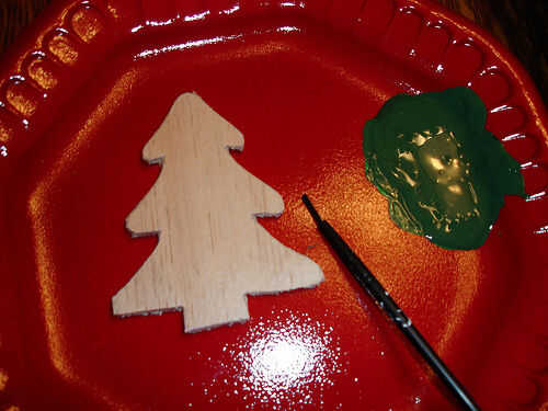 Comenzar mezclando un poco de pintura verde con un toque de negro para oscurecer a un color más natural. Con una capa fina y movimientos incluso pintar el árbol (dejando el carro sin pintar para que la madera es visible). Si largo movimientos lentos, puede conseguir la apariencia de las agujas de pino en el árbol. No se olvide de obtener el lado y la parte superior.