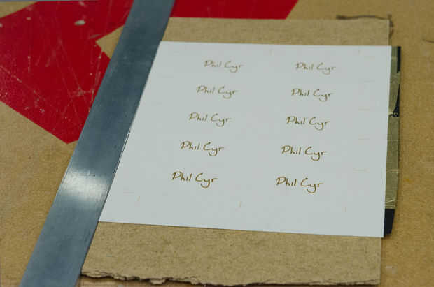 Mesas no gustan cuchillos. Alfombrillas de corte son muy importantes. No tengo uno lo suficientemente grande como para hojas llenas, usé un trozo de tablero de partículas.