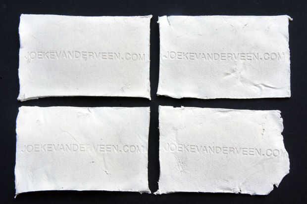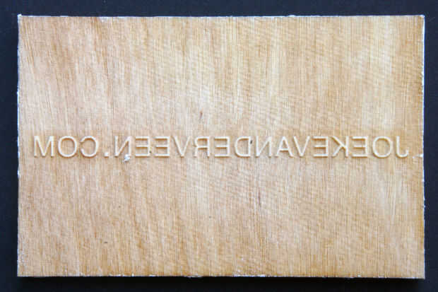 Mi segunda idea fue hacer un sello de madera. Había utilizado el enlace de mi web en un tamaño más grande, porque las letras pequeñas no sería realmente visibles. Utiliza los valores siguientes de la lasercutter para grabar el espacio alrededor de las letras: 85,7% potencia, 100% de velocidad. He cortado dos platos, uno con el enlace de mi web y en blanco y les pegan.