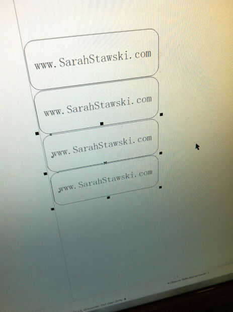 2. diseño de una tarjeta en Corel Draw. Fui con un diseño super simple y en la forma de la tarjeta como un pequeño rectángulo con esquinas redondeadas. Encuentra las letras para grabar y los límites de corte según la configuración dada por el grabador del laser CNC.